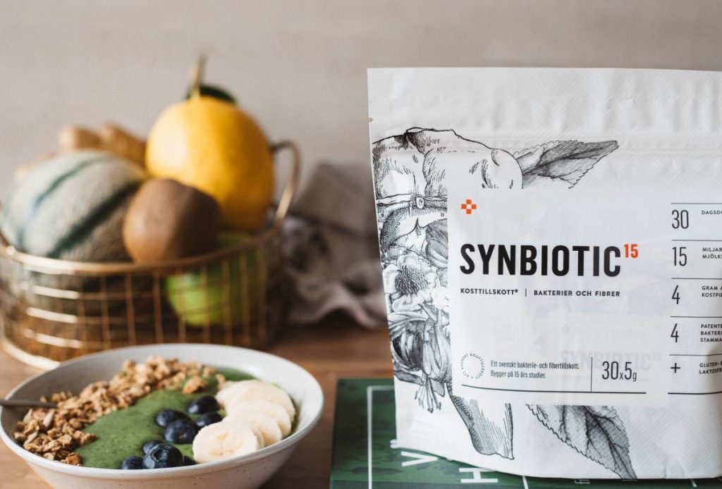 Our dietary supplement, Synbiotic, as the name suggests, is a synbiotic – this means it contains a combination of lactic bacteria (probiotics) and fibre (prebiotics) for your stomach. The fibre functions as food for the good bacteria so they feel good. Synbiotic contains living bacteria so it needs to be kept chilled! Synbiotic Supplements are available in three different variants – Synbiotic15 Daily, Synbiotic40 Enhanced and Synbiotic Gut-Brain. Read more about our synbiotics here.